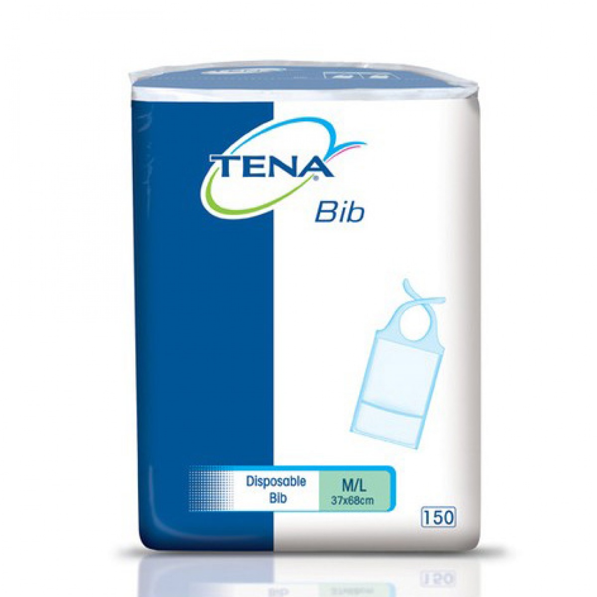 Bavagli Tena Bib sono dei pratici ausili per proteggere, durante i pasti, in maniera dignitosa, gli indumenti delle persone adulte. Monouso, formati da due strati di velino di cellulosa con all'interno un leggero foglio di politene per impedire il passaggio dei liquidi, hanno dei pratici laccetti posteriori ed una tasca anteriore contenitiva.